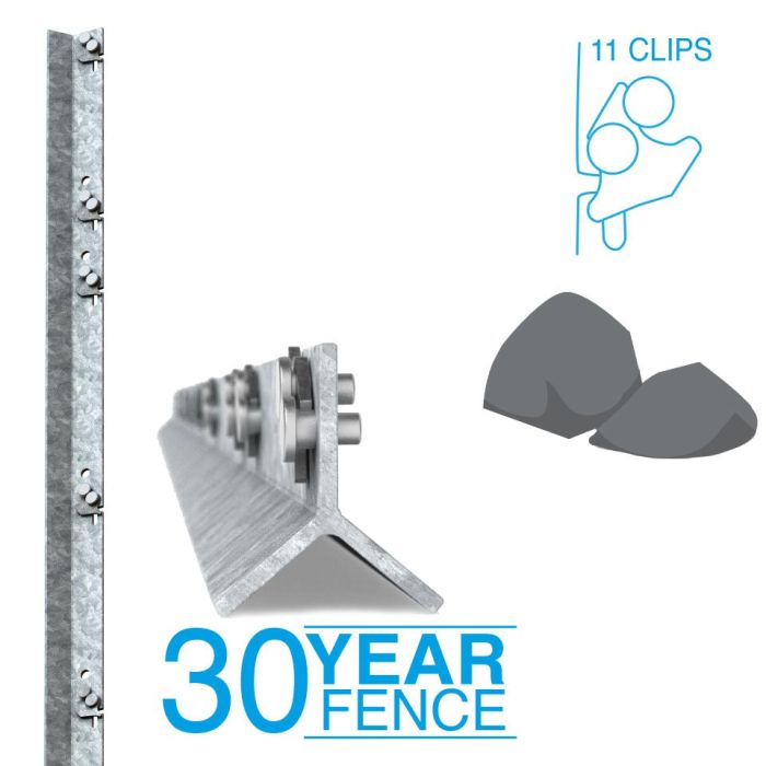 This eleven clip post will suit X Fence 8/80 premium long life wire netting. All eight lines of wire will be clipped, with two rows of barbed, electric or plain above, plus one row of plain or barbed wire as a base line. It can also be used for permanent electric fencing, line wire, barbed wire or rabbit fencing.