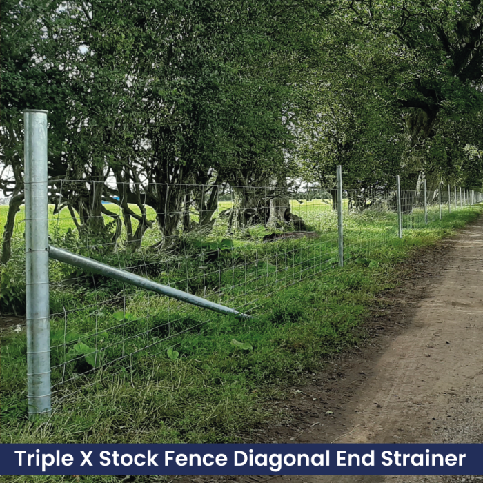Triple X strainers are proven in the field throughout the UK. Used by contractors, farmers and landowners alike, for both stock, deer and security fencing. Diagonal strainer types are suitable for firm soil and high tension straining. They are quicker, cheaper and easier to install, ideal in most applications, however if you have loose soil or taller fences then a box strainer should be considered. Diagonal strainers are also suitable for in line slight bends of 20-30 degrees.
