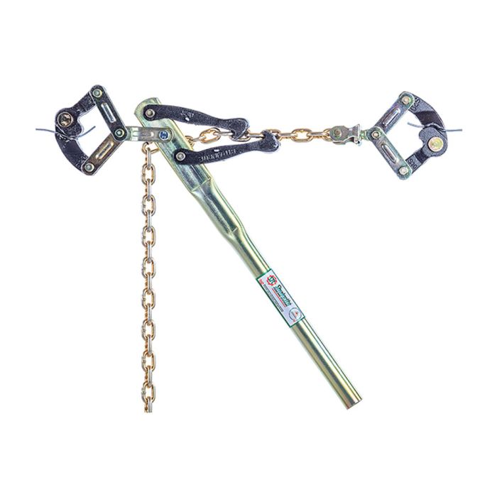 Strainrite Chain Strainers are a proven design with hard-wearing features that are built tough to last. The smooth grip jaws hold all common sizes of fence wire while minimising wire damage. The claws and grips are a heat-treated Spheroidal Graphite cast iron, making them durable for long service life. The rugged steel handles are gold passivated for protection. Also includes a gold passivated standard tested chain with swivel and heavy-duty rivets.