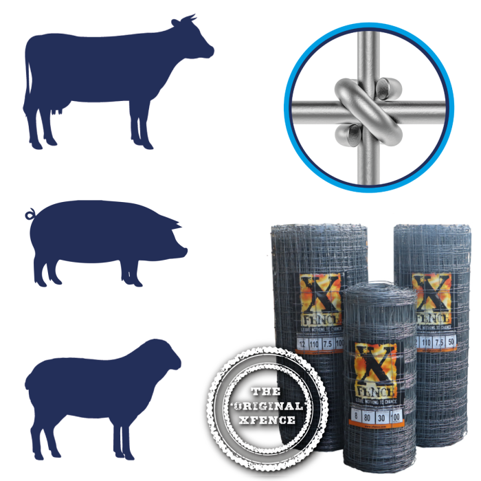 X fence Stock fence is a premium wire netting that will give a very good return on investment. The one piece vertical wire allows you to space intermediate stakes up to 5m apart. Fewer stakes mean less labour which leads to overall savings . The tension curves and the spring like properties of high tensile wire remain taut throughout its life providing an effective, long lasting fence.